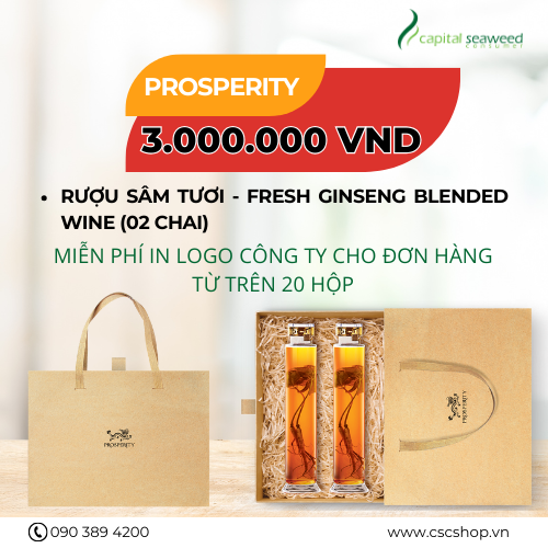 Công ty Cổ phần Capital Seaweed Consumer Việt Nam chúng tôi xin trân trọng giới thiệu đến Quý Khách Hàng hộp Combo Quà Tặng “PROSPERITY”, bao gồm: 02 chai rượu sâm ProSam (1.25L)